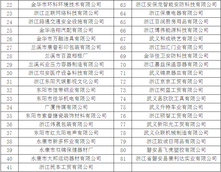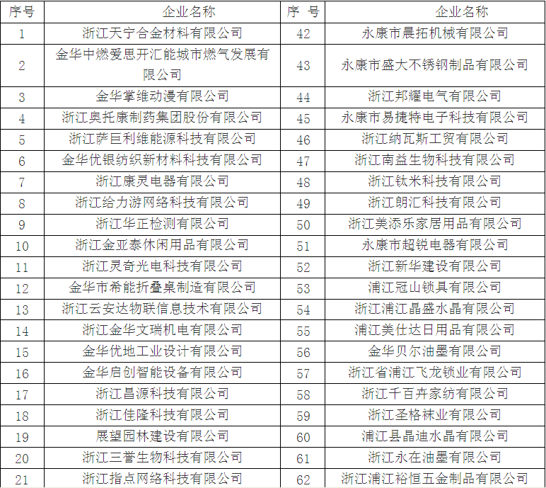 擬認定2017年金華市高新技術企業名單