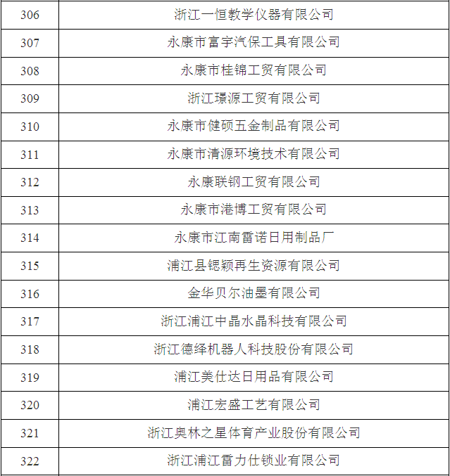 2017年金華市第三批省科技型中小企業名單