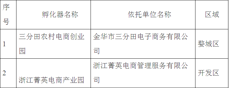 根據《金華市級科技孵化器認定與管理辦法》(金市科字〔2010〕66號),擬認定三分田農村電商創業園、浙江菁英電商產業園2家單位為金華市級科技孵化器,現予以公示,接受社會監督。如有異議,請來人來電反映,以個人名義反映的,請署真實姓名;以單位反映的,須加蓋單位公章;匿名反映的材料不予受理。公示日期為12月19日至12月26日。