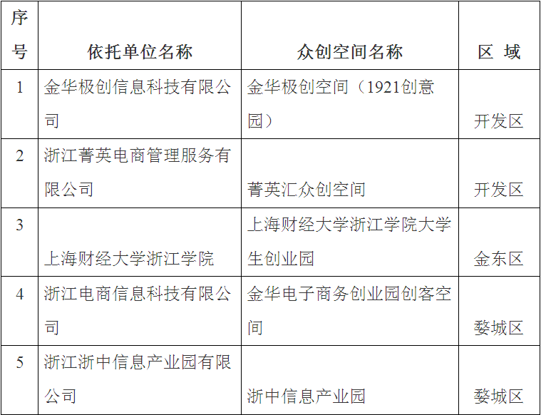 根據《金華市科學技術局關于印發金華市眾創空間管理辦法(試行)的通知》(金市科〔2016〕70號),擬認定金華極創空間(1921創意園)等7家單位為金華市級眾創空間,現予以公示,接受社會監督。如有異議,請來人來電反映,以個人名義反映的,請署真實姓名;以單位反映的,須加蓋單位公章;匿名反映的材料不予受理。公示日期為12月19日至12月26日。