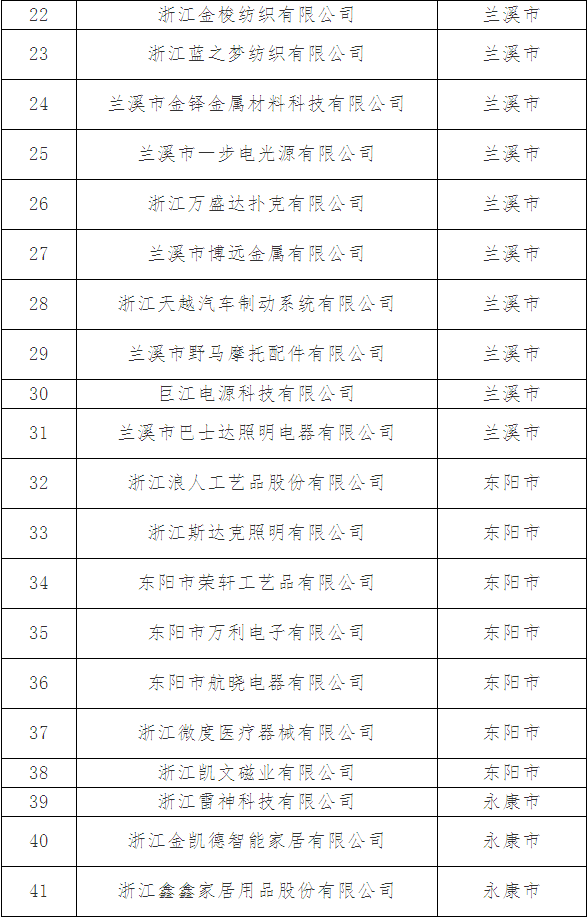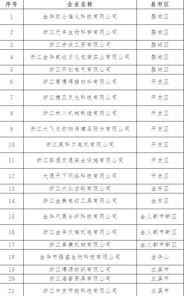 擬認定2018年金華市專利示范企業名單