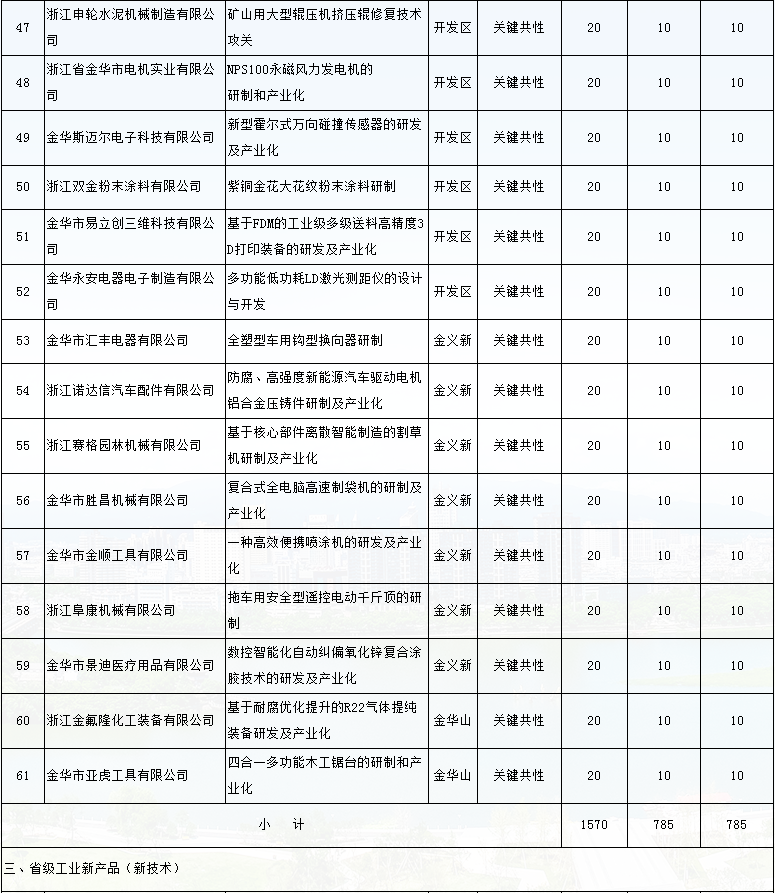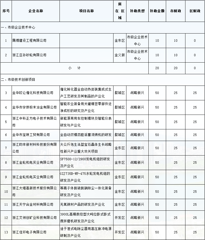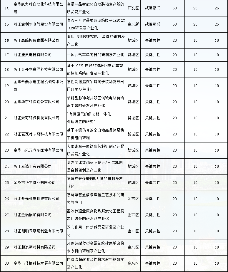 2017年金華市市級技術創新財政資金拔付情況的公示