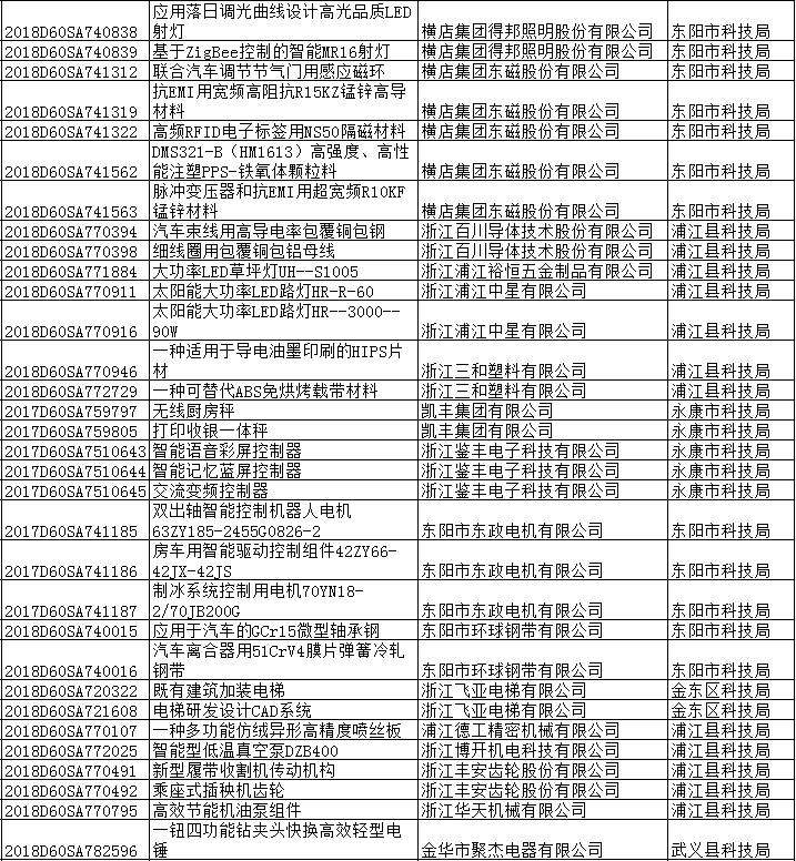 浙江省科學技術廳2018年新產品試制計劃項目(第一批)公示