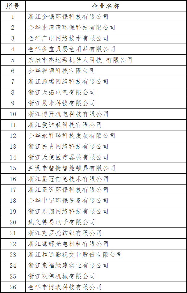 根據《浙江省人民政府關于下放部分省級行政審批和管理事項的通知》(浙政發〔2012〕73號)精神,按照《浙江省科學技術廳關于印發浙江省科技型中小企業認定管理辦法的通知》(浙科發高〔2016〕88號)的有關文件規定,在各縣(市、區)科技主管部門審核推薦基礎上,經市科技局核對,擬同意認定浙江金鍋環??萍加邢薰镜?21家企業為2018年金華市第一批浙江省科技型中小企業,現予以公示,接受社會監督。