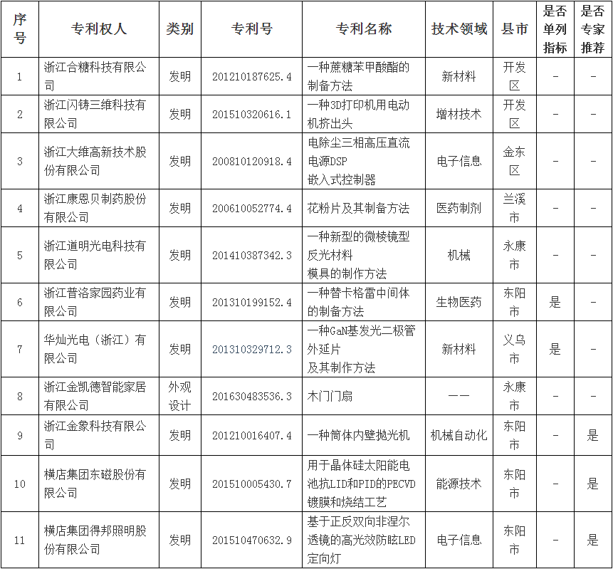 附件:2018年浙江省專利獎金華市擬推薦項目名單