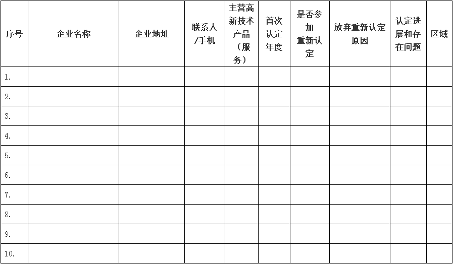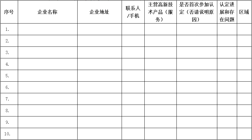 請各縣(市、區)科技局和開發主體科技主管部門盡早謀劃、精心組織、狠抓落實、確保實效,并從1月開始,于每月15日、30日前填報《金華市新申報國家高新技術企業清單》(見附件1)報市科技局工業與高新技術處備案。