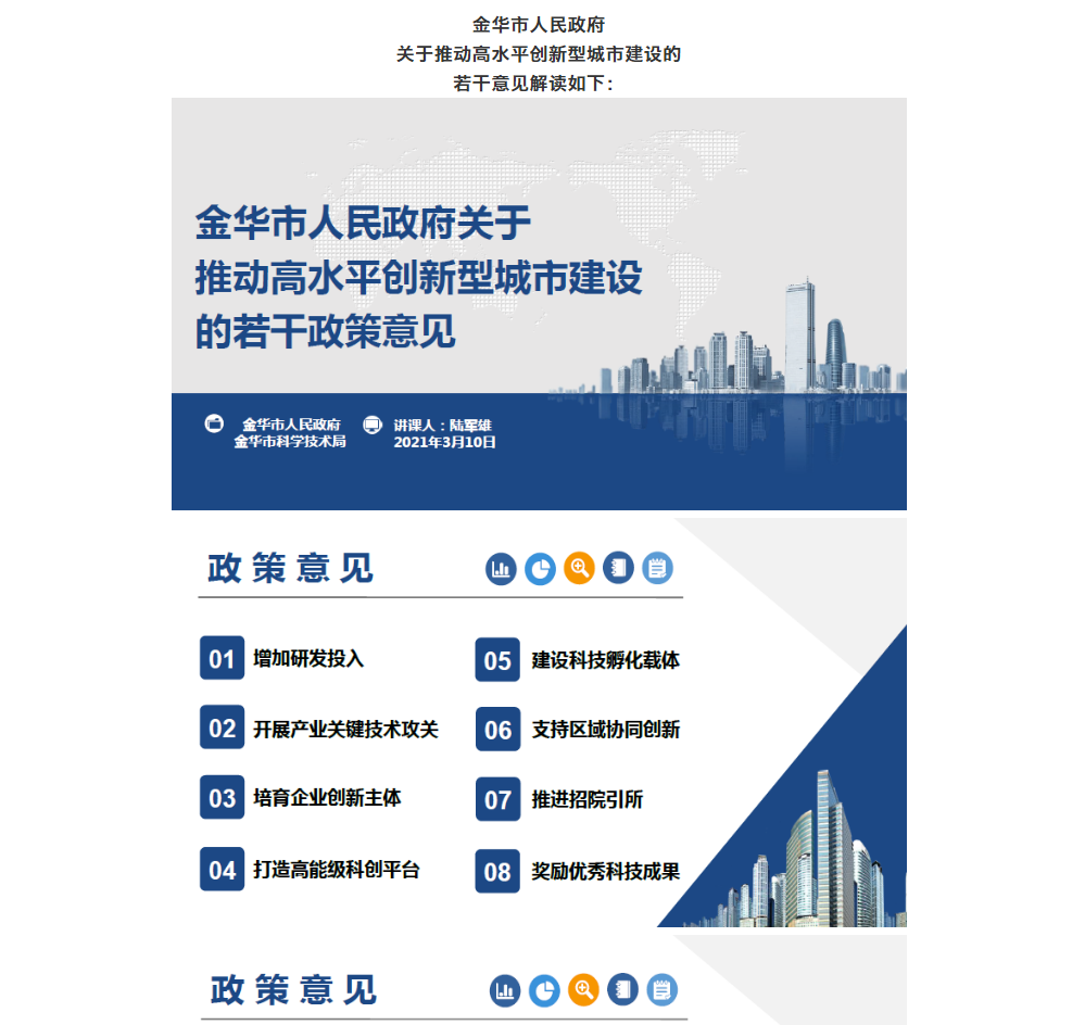 金華市人民政府關于推動高水平創新型城市建設的若干意見