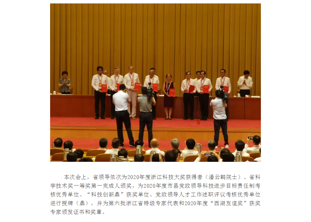 浙江大維高新技術股份有限公司的約瑟夫·斯發基斯,浙江師范大學的莫洽林·葉夫根、雅羅斯拉夫·內塞利爾3位外國專家獲得2020年“西湖友誼獎”。