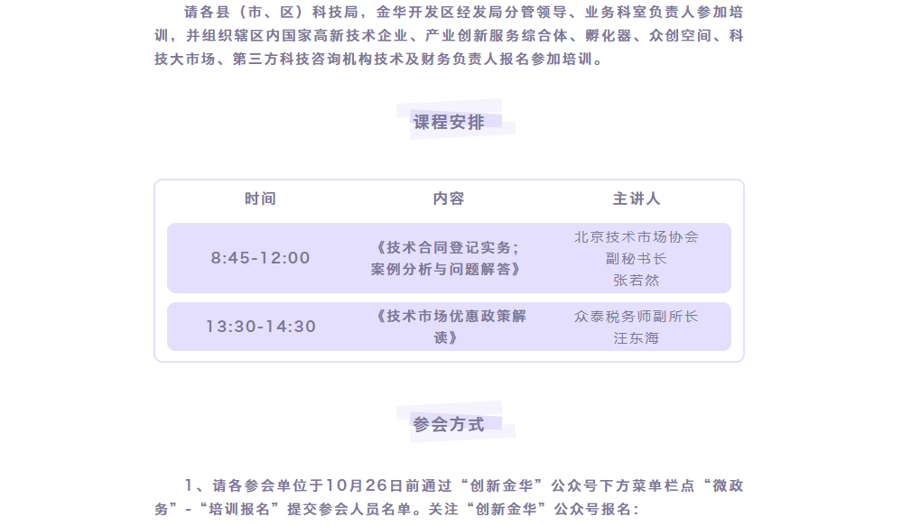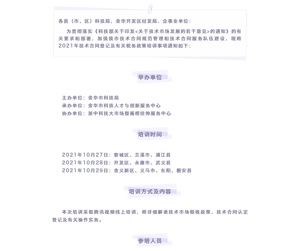 金華市科學技術局 關于召開技術合同及相關稅務政策培訓的通知